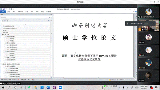 2022届硕士研究生预答辩工作方案》,成立了预答辩工作领导小组。综合考虑当前疫情防控形势,此次预答辩采用线上线下相结合的方式进行,35名同学通过线上的方式完成。