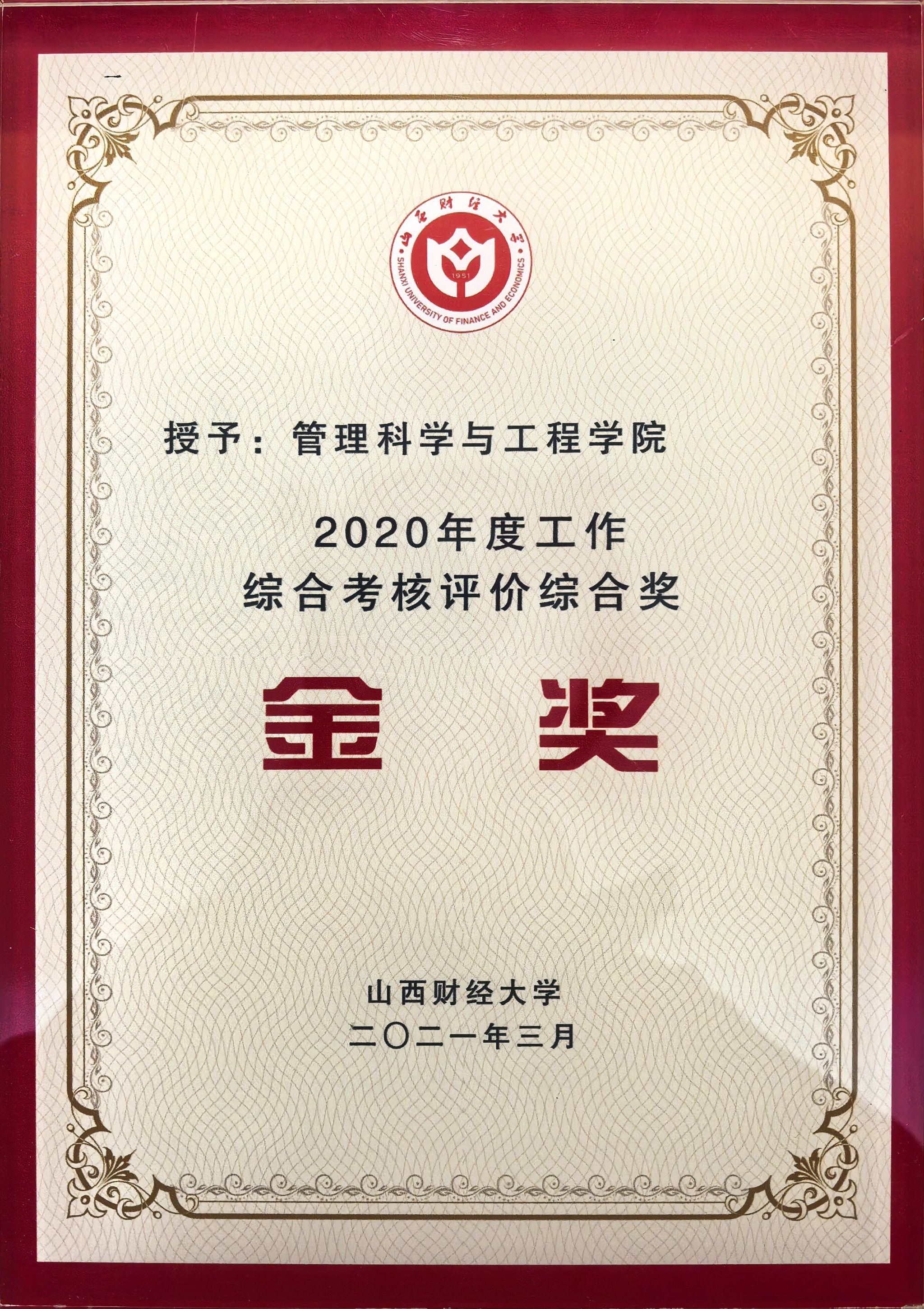 2020年做爱直播 获山西财经大学工作综合考核评价优秀单位金奖。