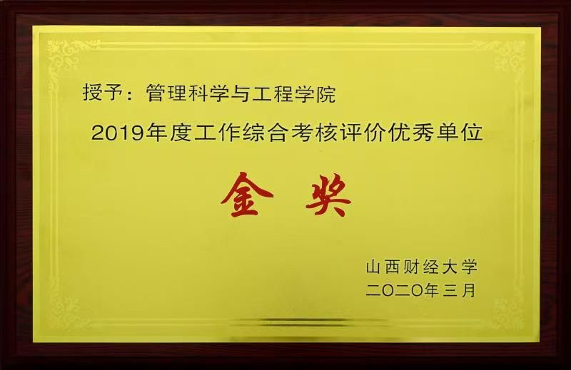 2019年做爱直播 获山西财经大学工作综合考核评价优秀单位金奖。