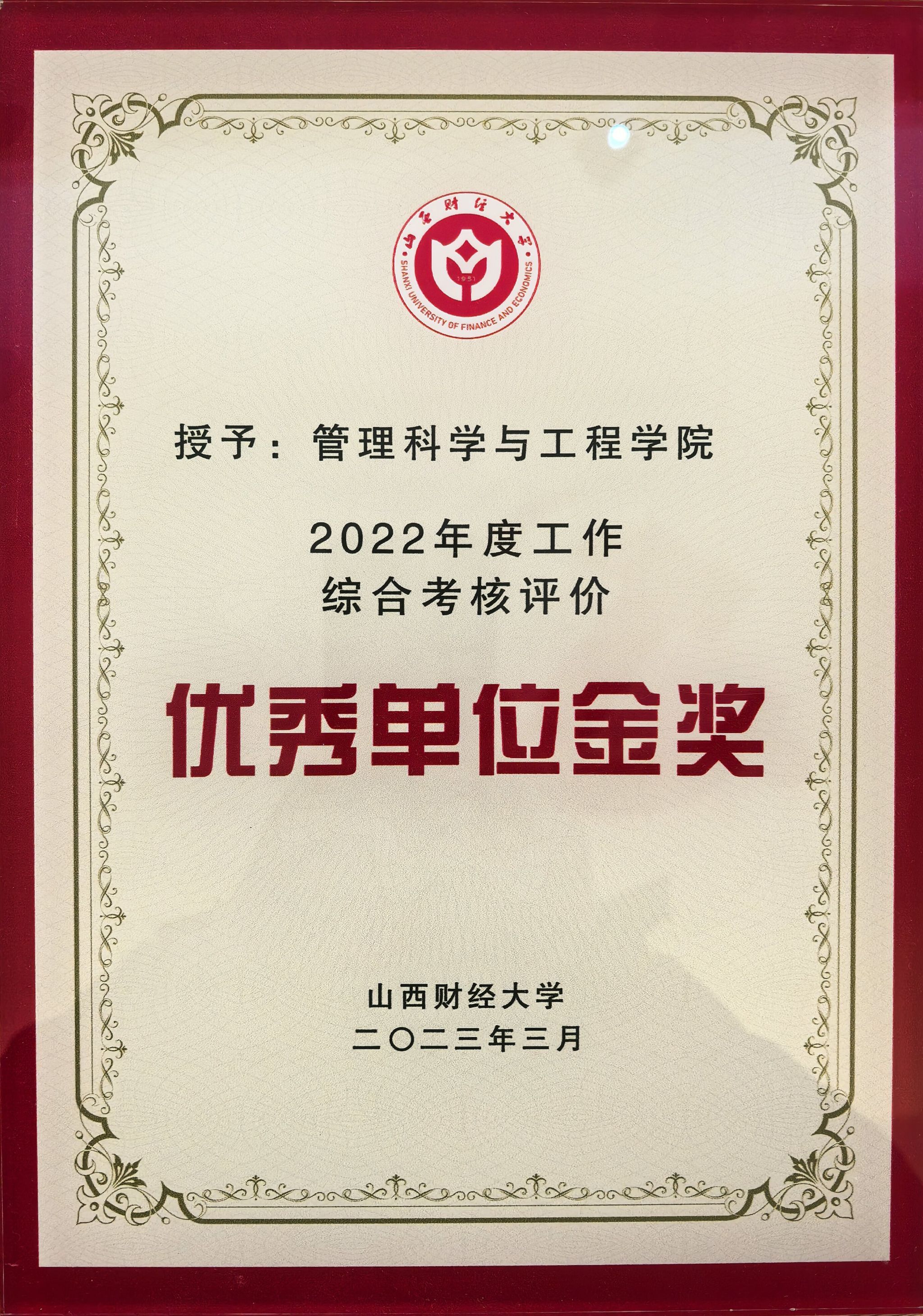 2022年做爱直播 获山西财经大学工作综合考核评价优秀单位金奖。