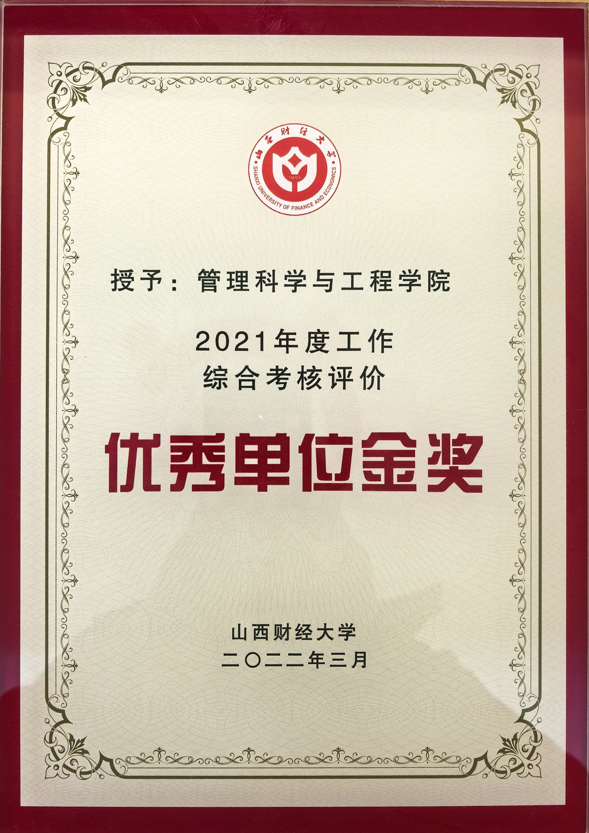 2021年做爱直播 获山西财经大学工作综合考核评价优秀单位金奖。