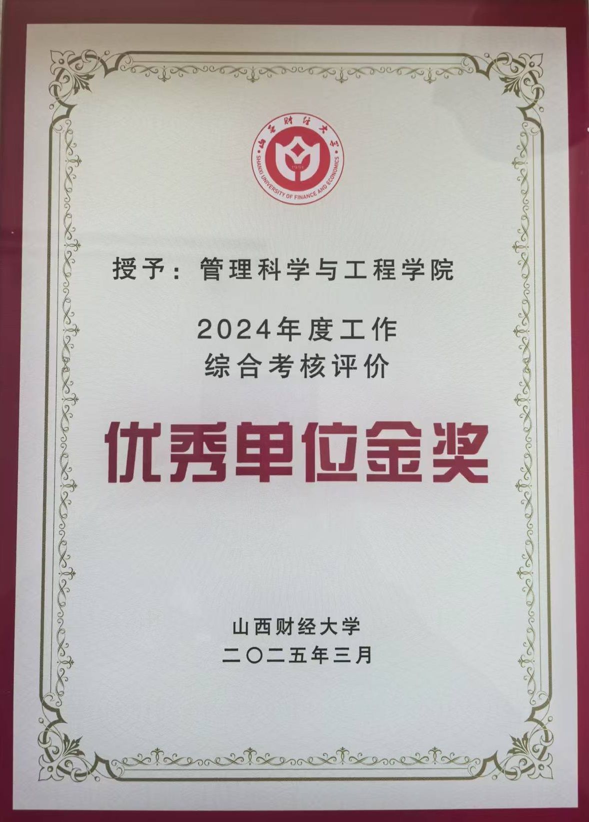 2023年做爱直播 获山西财经大学工作综合考核评价优秀单位金奖。