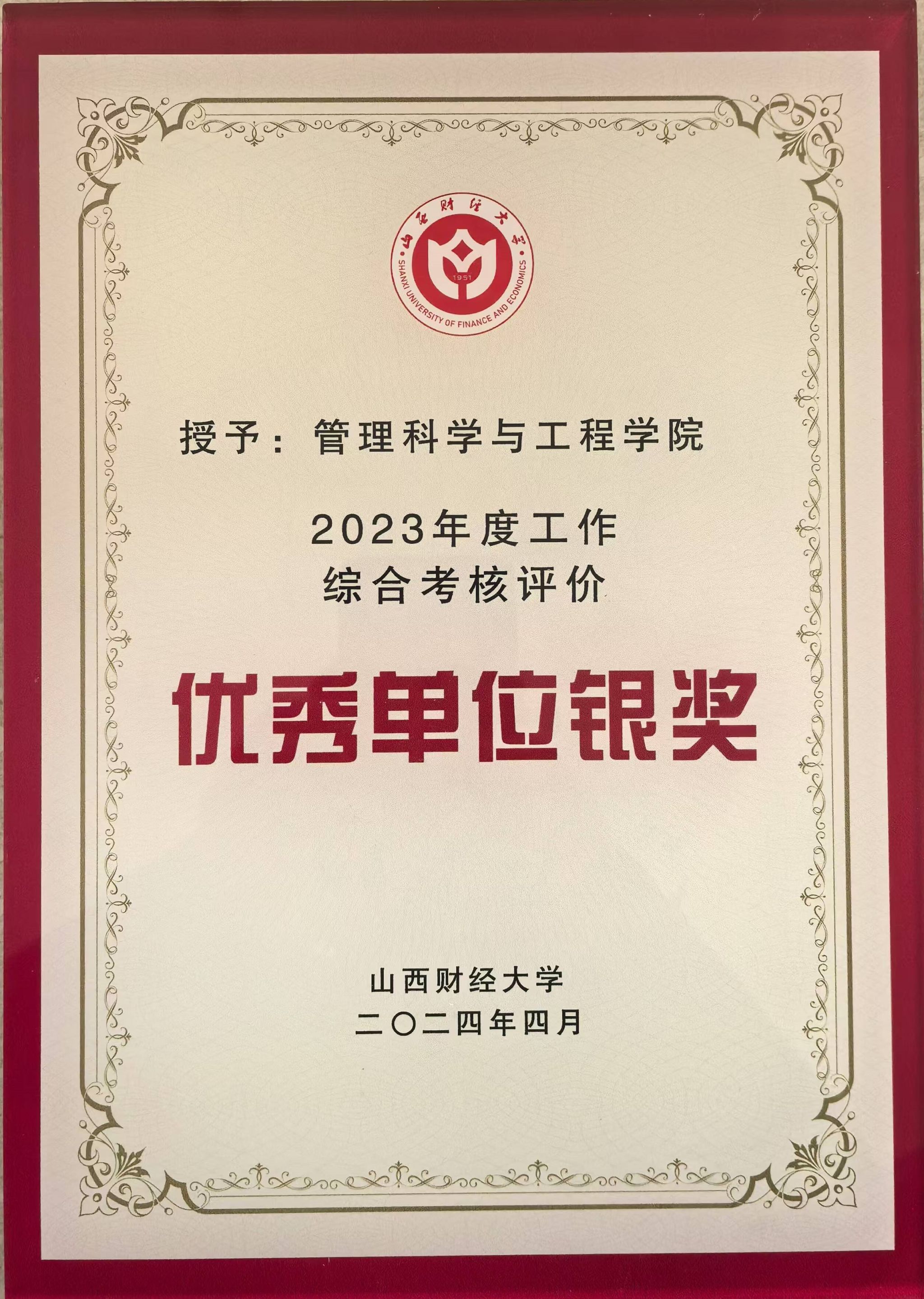 2023年做爱直播 获山西财经大学工作综合考核评价优秀单位银奖。