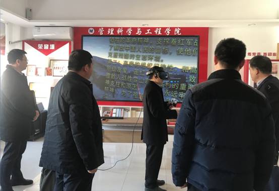 座谈后,张苏参观视察了学院百米长廊文化墙建设情况,并在学院“VR智慧党建体验中心”沉浸式交互体验了红军长征中爬雪山过草地这一重大历史事件,重温了百年大党波澜壮阔发展历程,直面感受了老一辈中国共产党人抛头颅洒热血、不怕牺牲的革命精神。