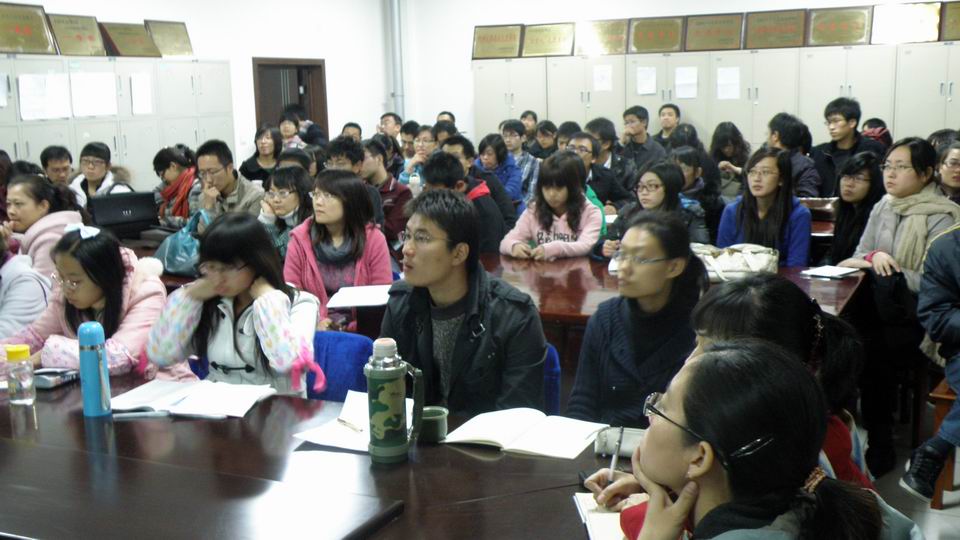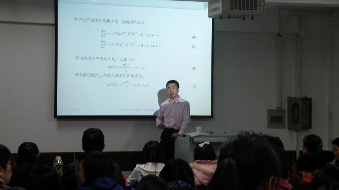2010年10月27日19:00-21:00,上海交通大学管理学院博士研究生盖庆恩来做爱直播 做“要素配置扭曲与农业全要素生产率研究”的报告,郭淑芬副院长主持报告会,地点:新南区SA610沙盘模拟实验室,参加人:做爱直播 和统计学院部分老师及硕士、博士研究生等100人。