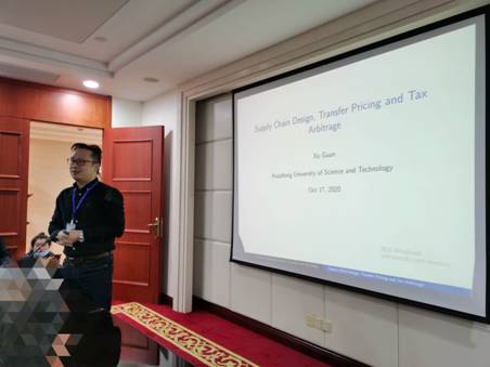 关旭以“Supply Chain Design, Transfer Pricing and TaxArbitrage”为题进行了汇报,主要围绕供应商应该选择生产端还是销售端做转移放在低税区、影响转移的因素及转移时间的选取、案例分析等问题进行了介绍,并指出在垄断情况下,企业总是倾向于从低税收的角度来分配税收优惠;零售竞争极大地阻止了高-低形式的盈余;当两个竞争企业可以同时选择其分配策略时,低-高格式可以成为他们的均衡选择等。